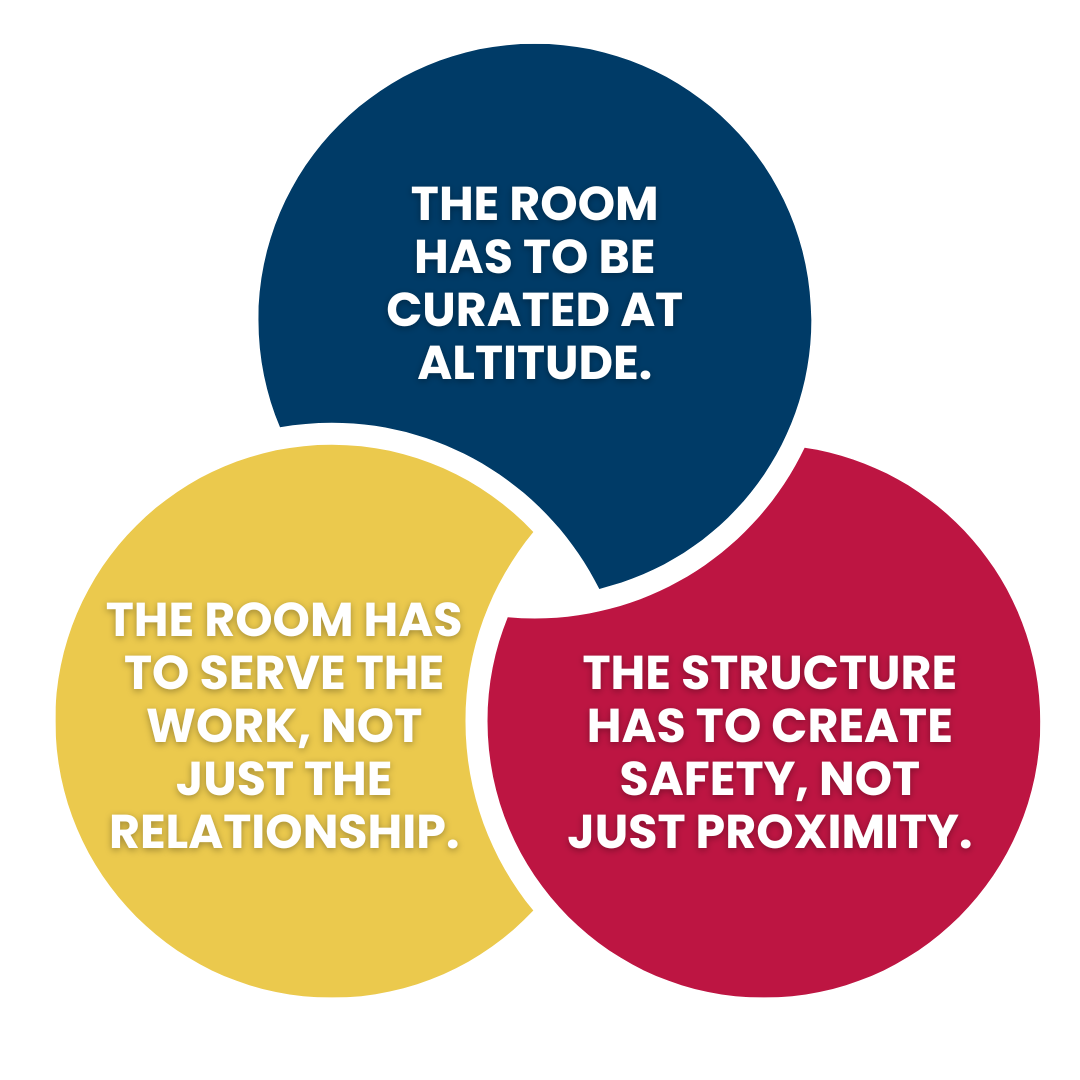 What I learned from those experiences isn't that the right room can't exist. It's that it can't happen by accident. It has to be architected. Curated altitude, structural safety, and a relentless orientation around real work — those three things don't just show up. Someone has to decide they matter and build accordingly. That clarity has shaped everything about how I think about professional community now, and what I refuse to accept as a substitute.